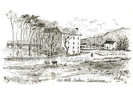 Old Mill Caherciveen a drawing by Sean O’Shea